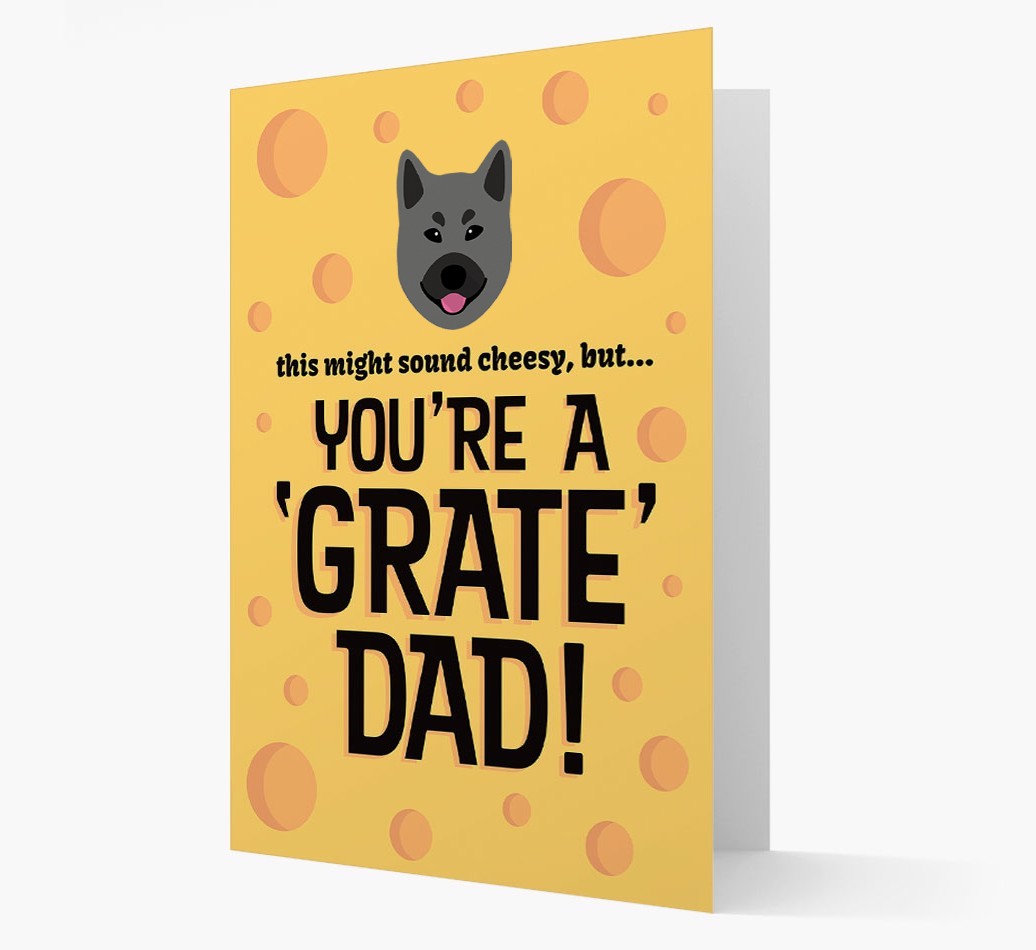 Featuring our cheeky Norwegian Elkhound icon, this card is a brie-lliant way to let him know he's a 'grate' dad to Norwegian Elkhound.