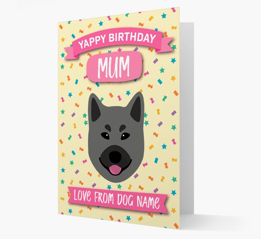 'Yappy Birthday Mum' - Personalised Norwegian Elkhound Birthday Card