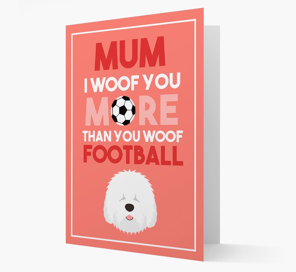 Mum I Woof You More Than You Woof Football: Personalised Old English Sheepdog Card