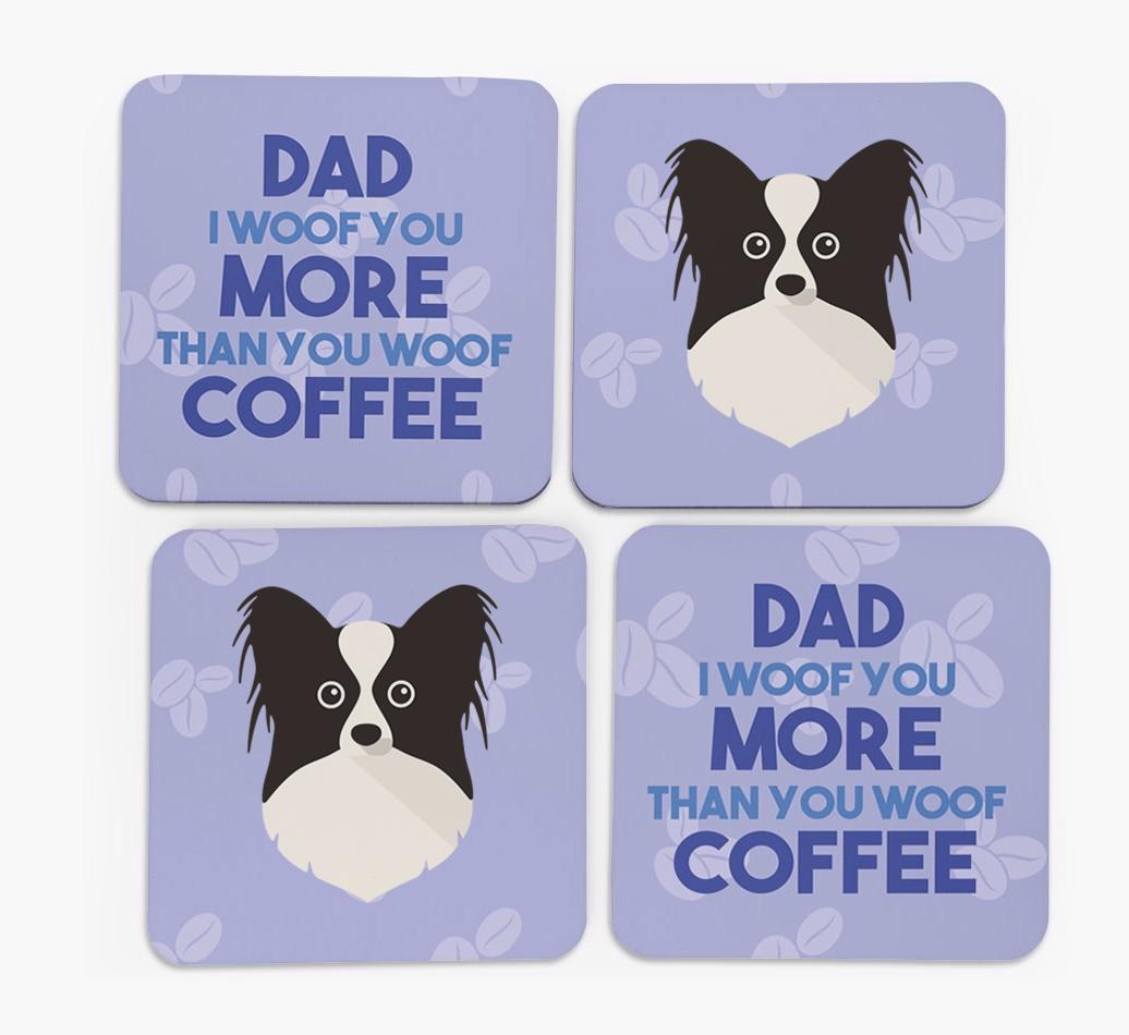 'Dad I Woof You More Than You Woof Coffee' - Personalised Papillon Coasters