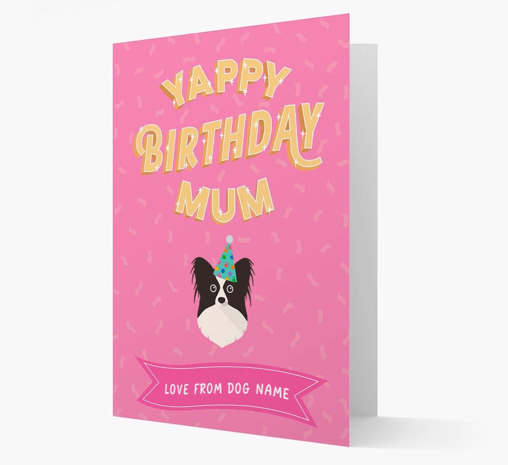 This customisable Papillon card is a woofly way for Papillon to wish their mum the yappiest of birthdays!