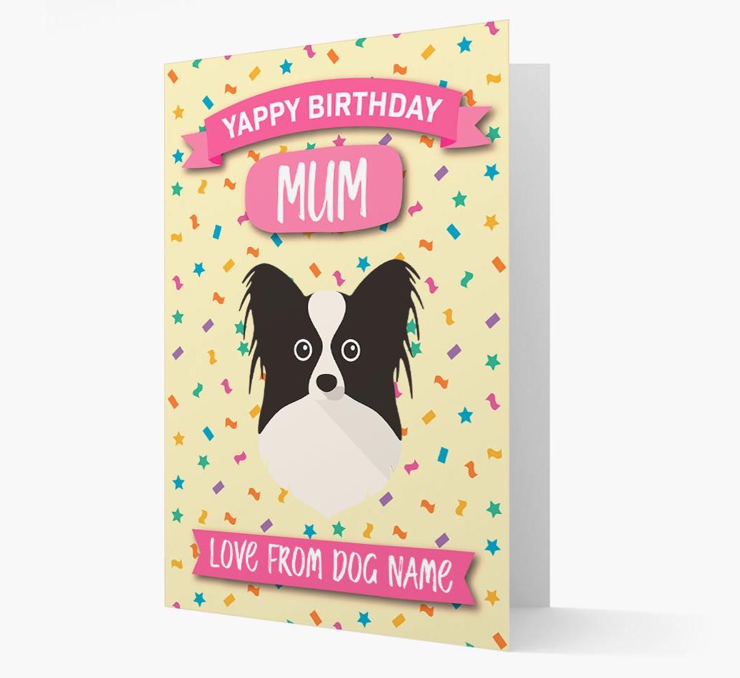 'Yappy Birthday Mum' - Personalised Papillon Birthday Card