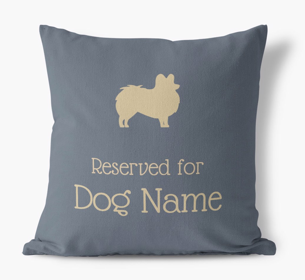 This luxurious faux suede cushion, complete with a silhouette of a Papillon is personalised just for Your Papillon so they know their place is never getting stolen!