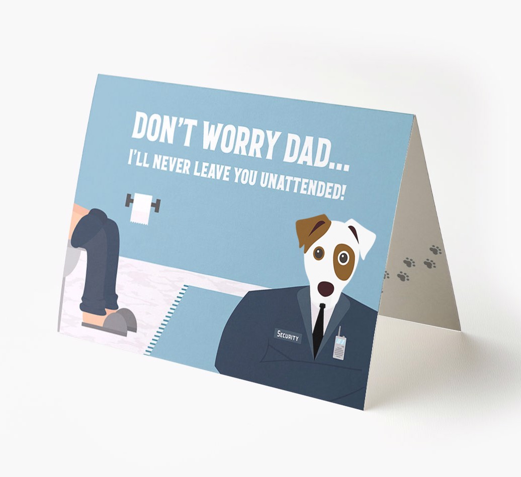 Pawfect for father's day and for Parson Russell Terrier dads, this card is the ultimate way to let your dad know that his personal security guard (Parson Russell Terrier) will never leave him unattended!