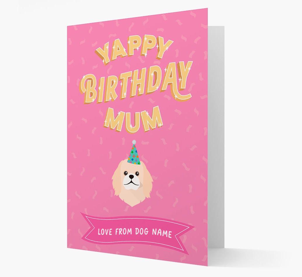 This customisable Pekingese card is a woofly way for Pekingese to wish their mum the yappiest of birthdays!