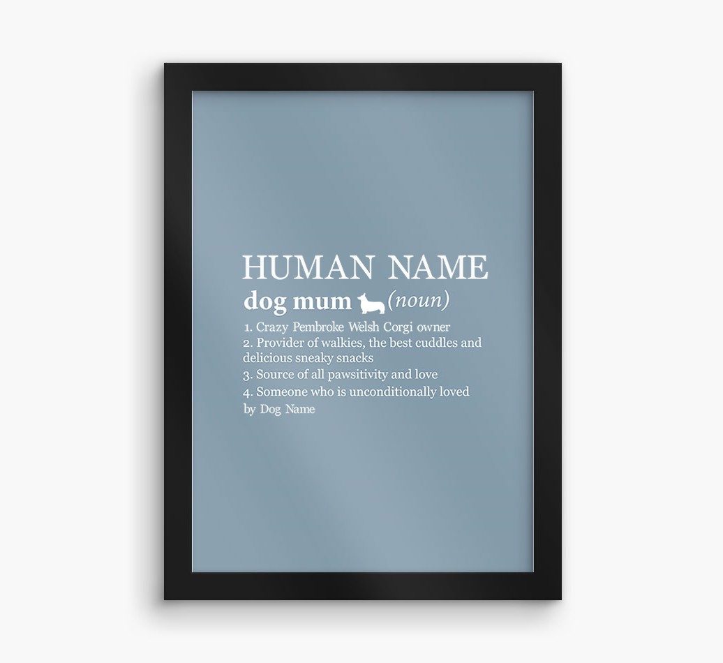 Mum Definition: Personalised Pembroke Welsh Corgi Framed Print