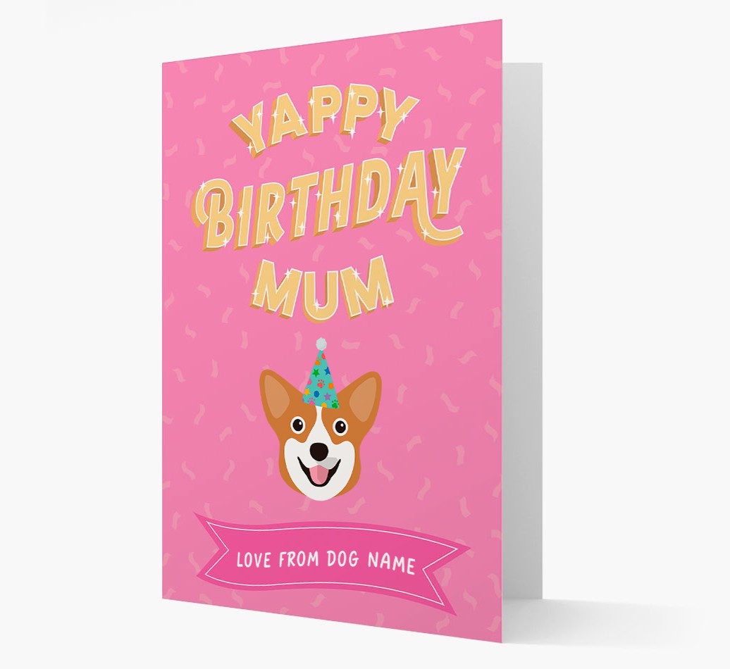 Yappy Birthday Mum: Personalised Pembroke Corgi Card