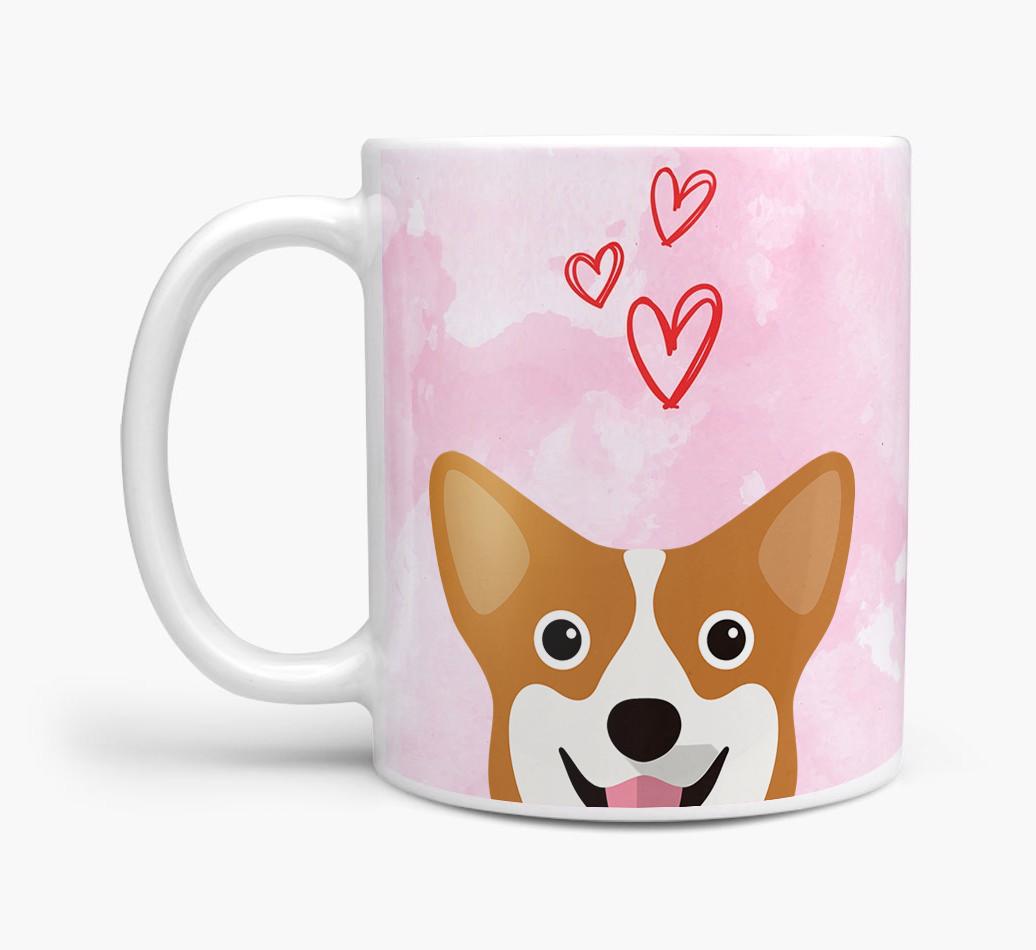 Peeking Dog & Hearts: Personalised Pembroke Welsh Corgi Mug
