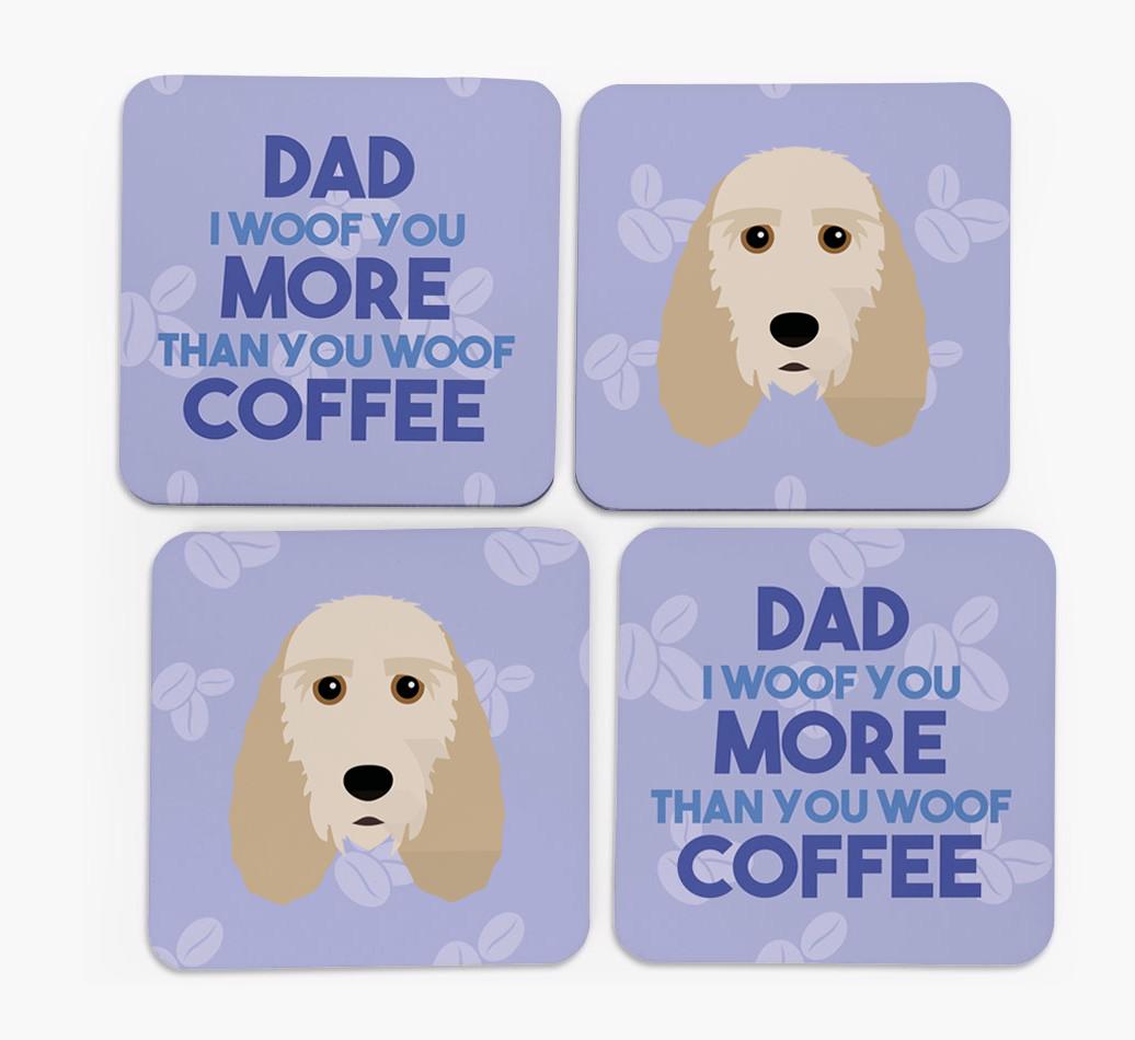 'Dad I Woof You More Than You Woof Coffee' - Personalised Petit Basset Griffon Vendeen Coasters