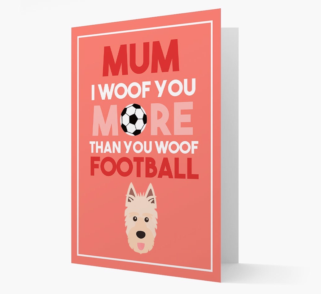 Mum I Woof You More Than You Woof Football: Personalised Picardy Sheepdog Card