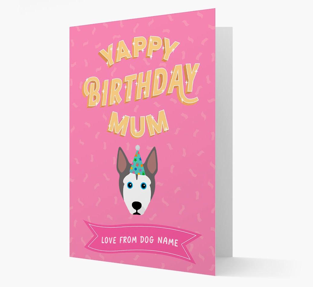 This customisable Pitsky card is a woofly way for Pitsky to wish their mum the yappiest of birthdays!