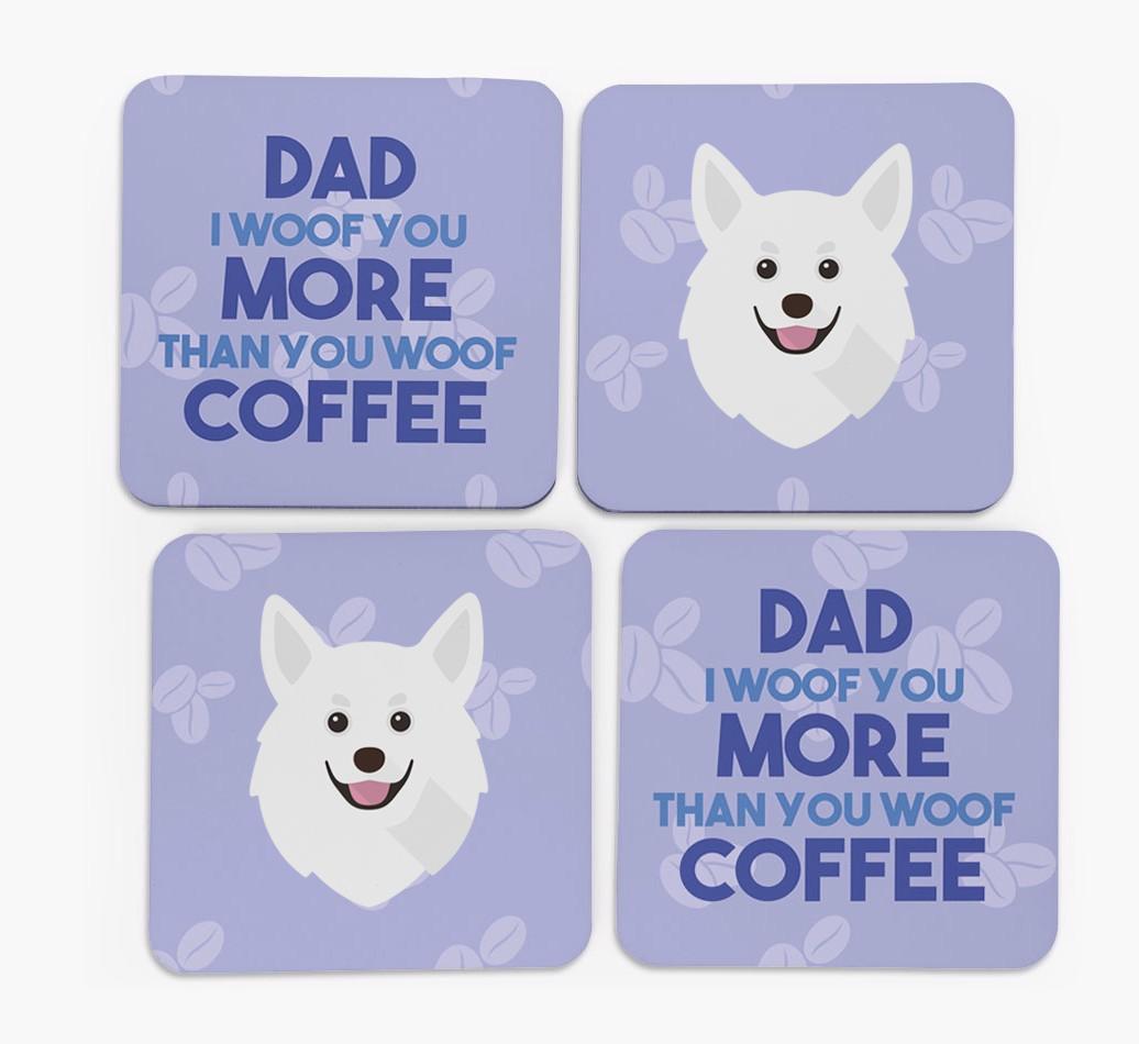 'Dad I Woof You More Than You Woof Coffee' - Personalised Pomchi Coasters