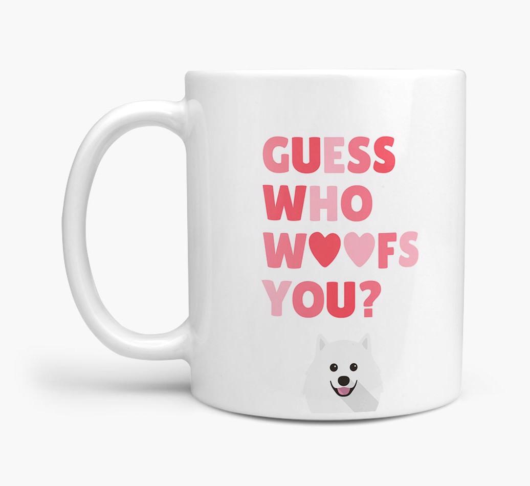 Personalised with Pomeranian's cute face, this adorable mug is perfect for showing off the one who "woofs" you - how sweet!