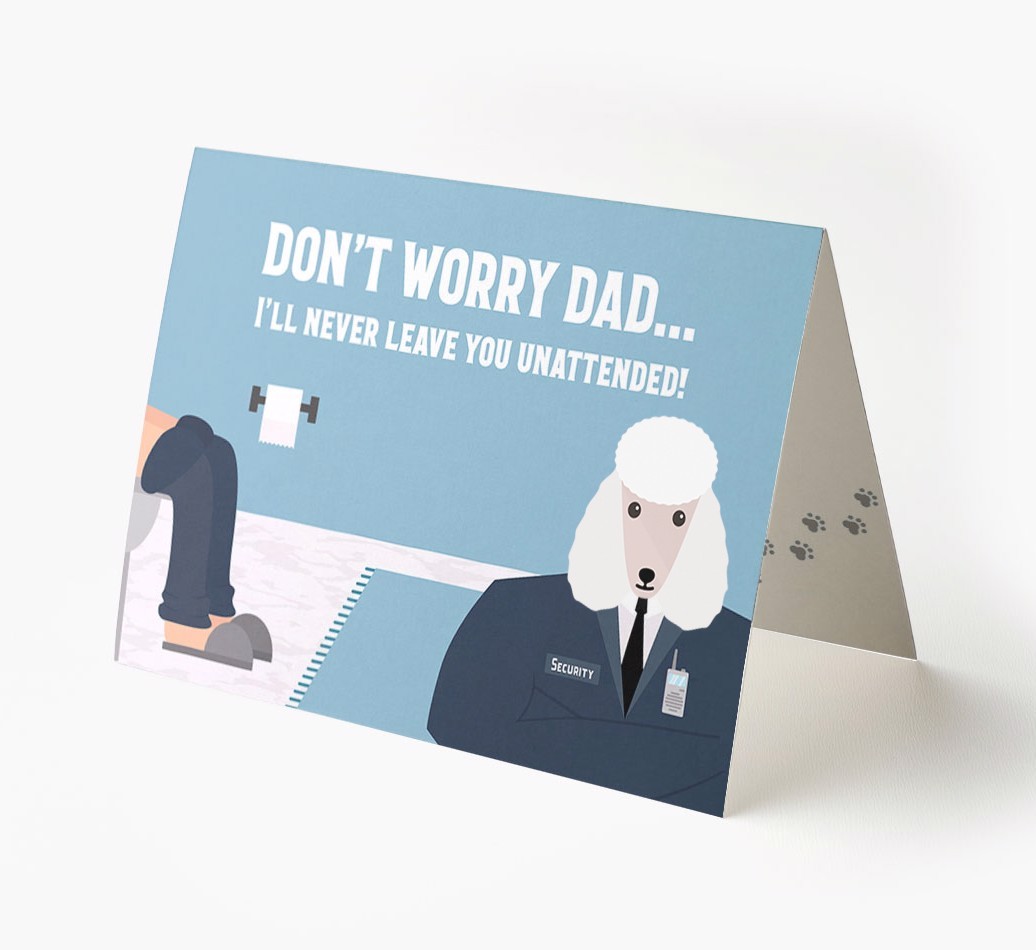 Pawfect for father's day and for Poodle dads, this card is the ultimate way to let your dad know that his personal security guard (Poodle) will never leave him unattended!