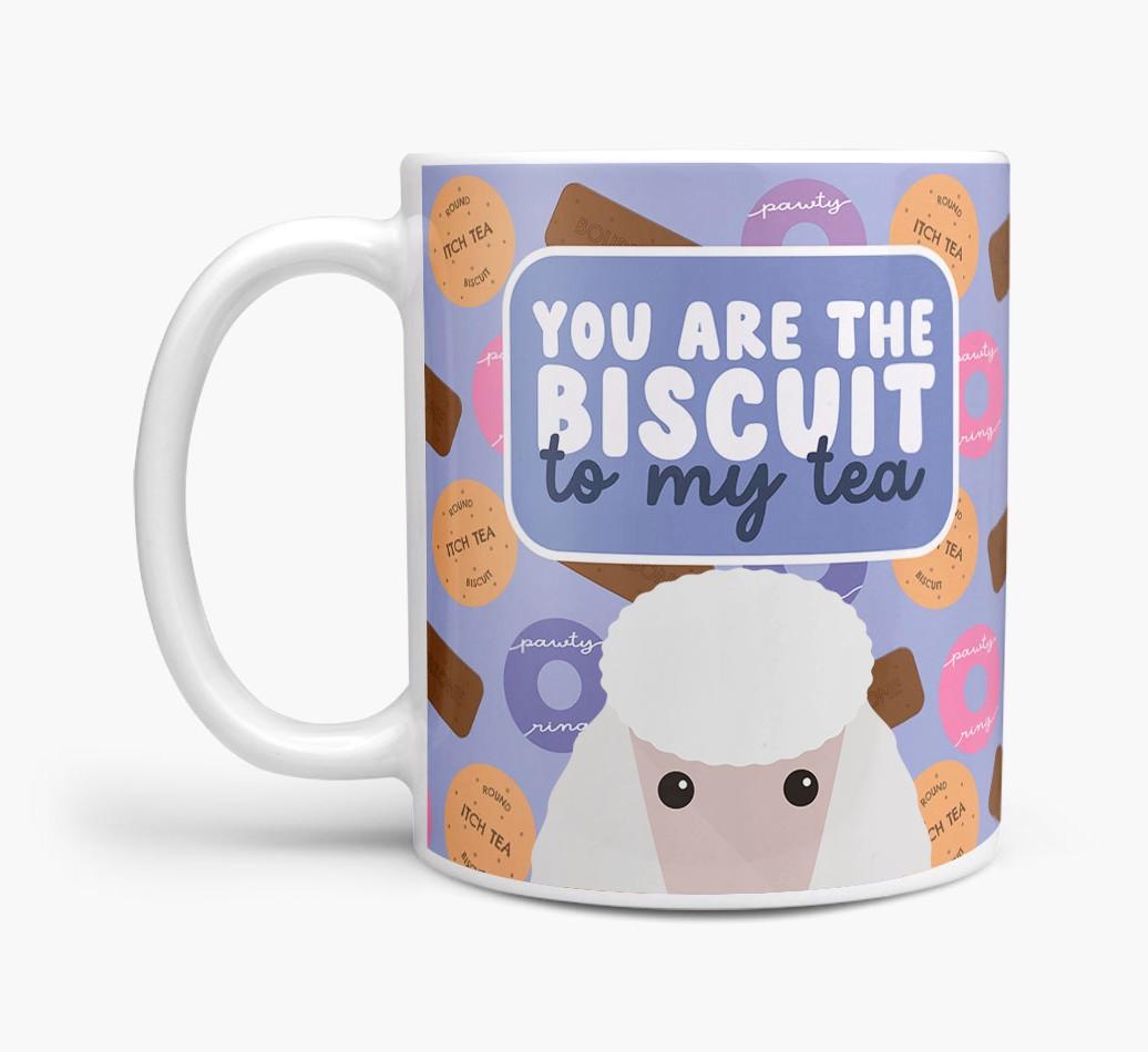 Featuring a cute biscuit motif paired with your Poodle's adorable face, this mug is bound to be a firm favourite in every household.