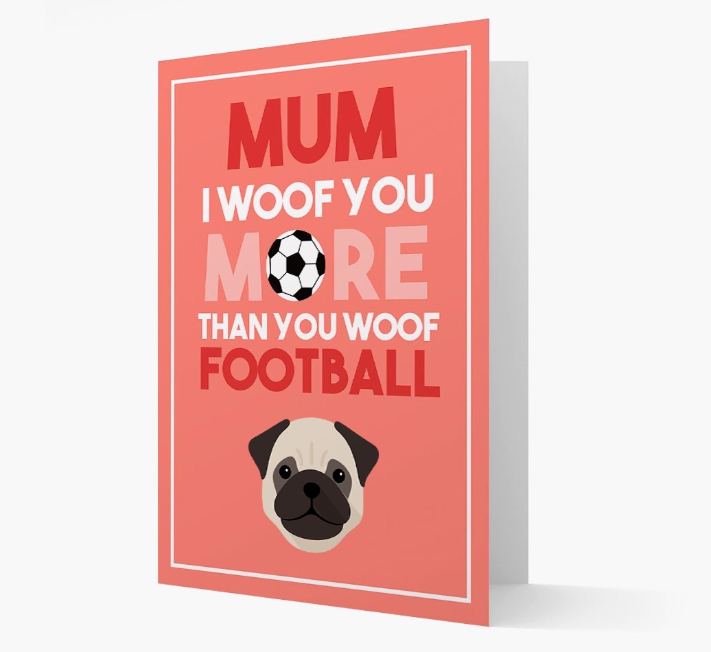 Mum I Woof You More Than You Woof Football: Personalised Pug Card