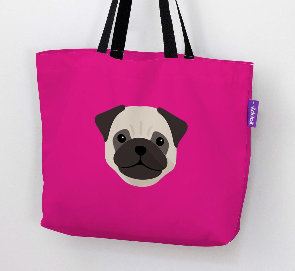 This Canvas Bag features an exclusive Pug icon printed on a bright, bold background.