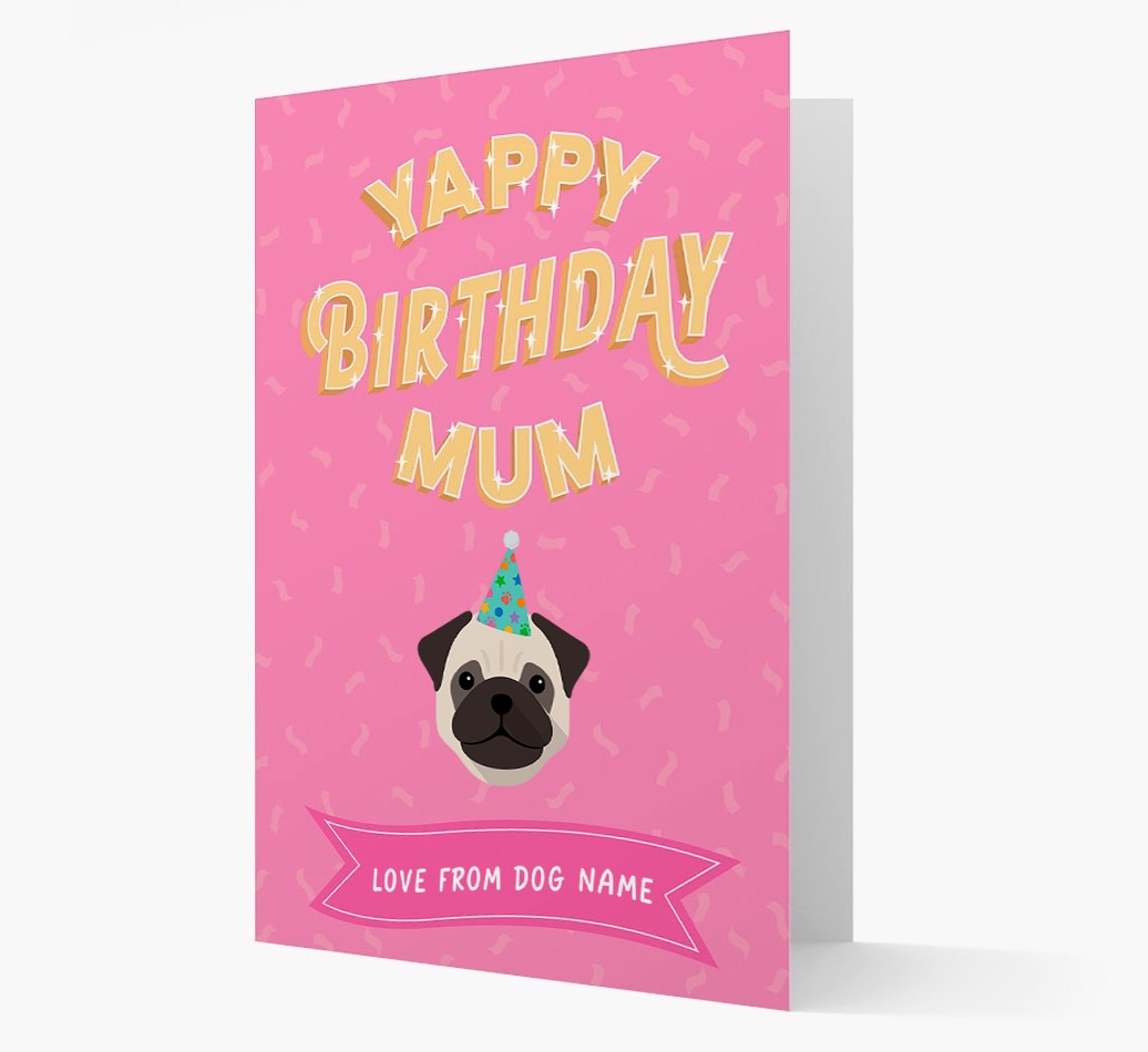 This customisable Pug card is a woofly way for Pug to wish their mum the yappiest of birthdays!