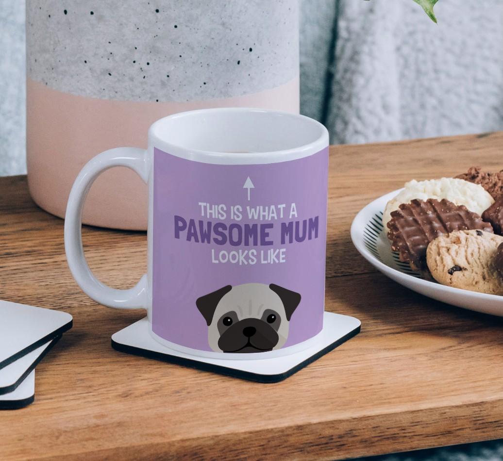 Featuring a cheeky Pug icon and printed with the words ‘This is what a pawsome mum looks like’, this mug is sure to be a firm favourite!