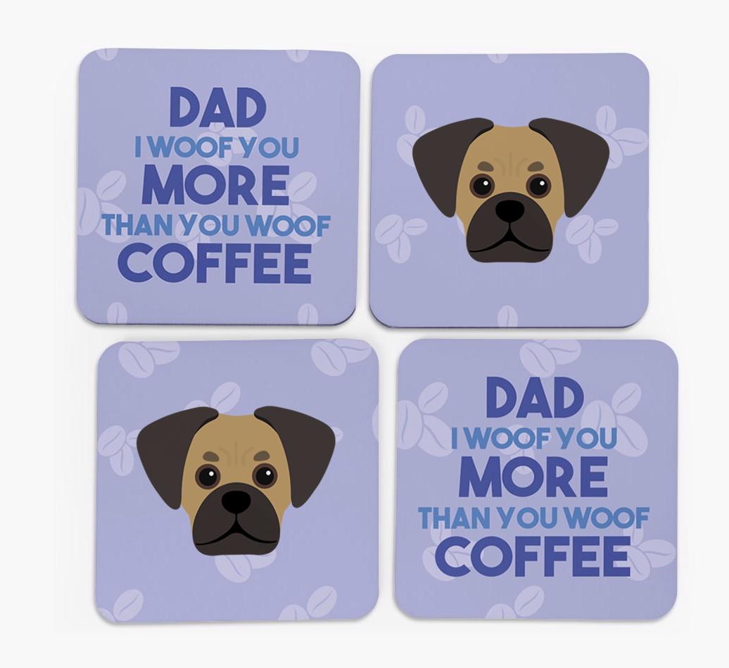 'Dad I Woof You More Than You Woof Coffee' - Personalised Pugalier Coasters