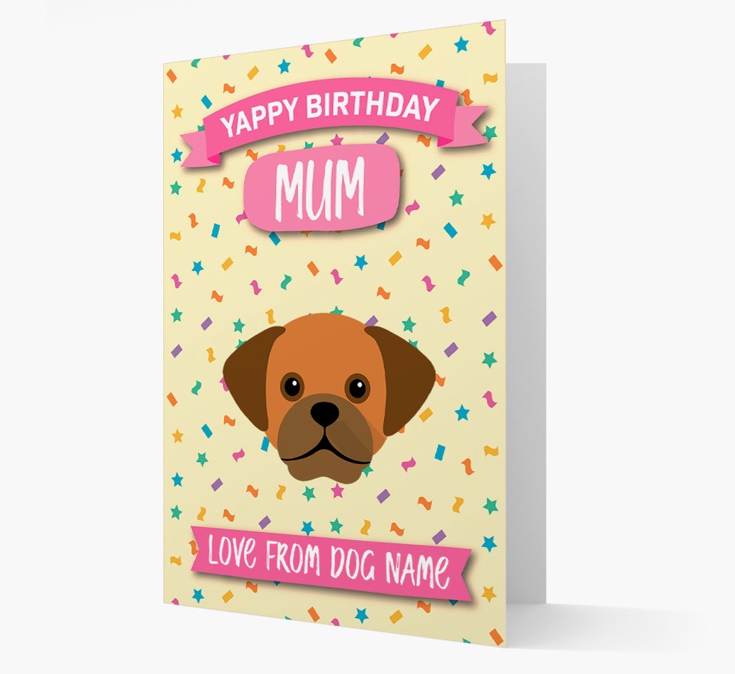 'Yappy Birthday Mum' - Personalised Puggle Birthday Card