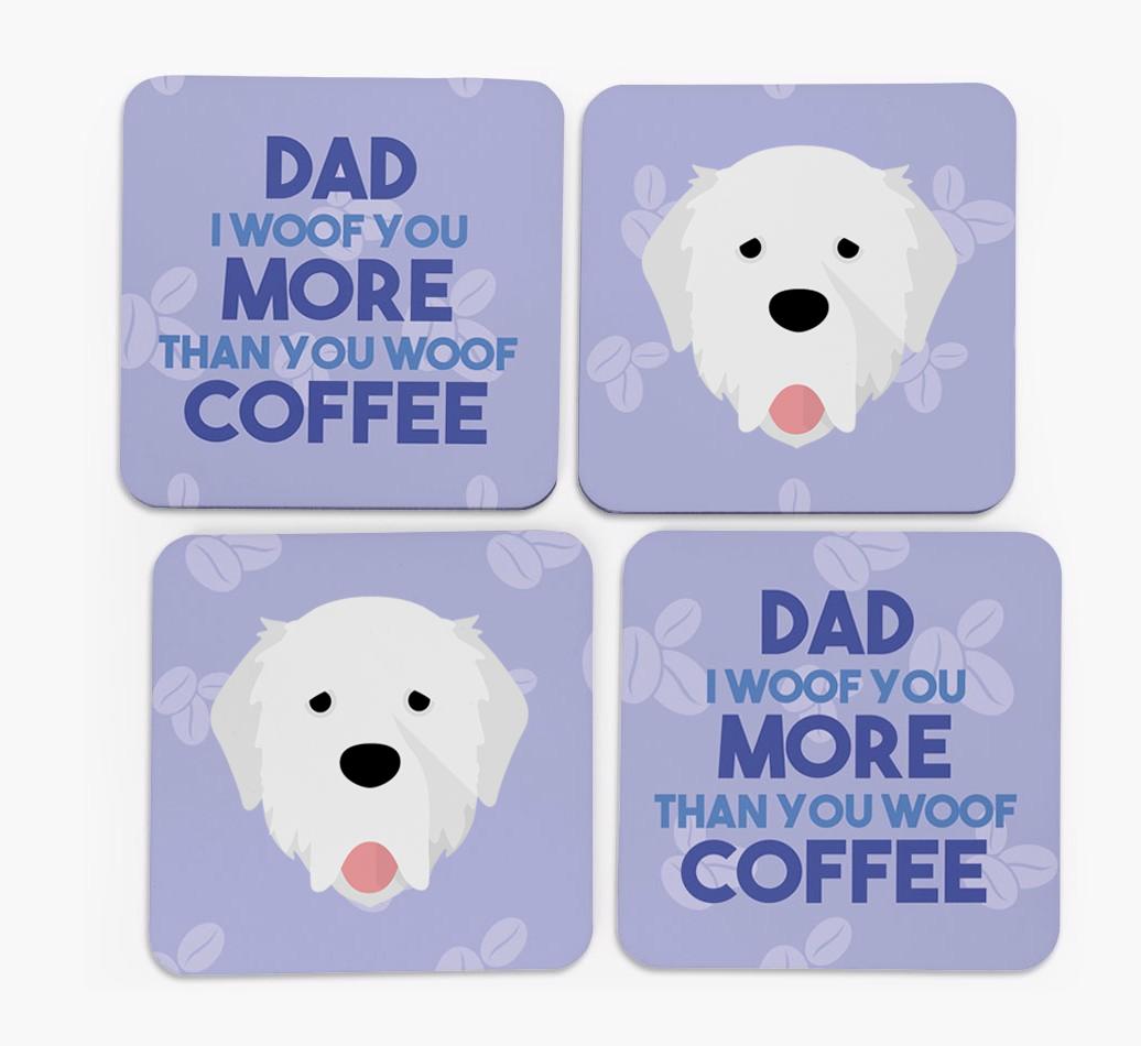 'Dad I Woof You More Than You Woof Coffee' - Personalised Pyrenean Mastiff Coasters