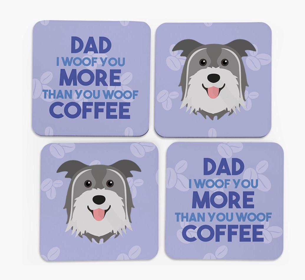 'Dad I Woof You More Than You Woof Coffee' - Personalised Pyrenean Shepherd Coasters