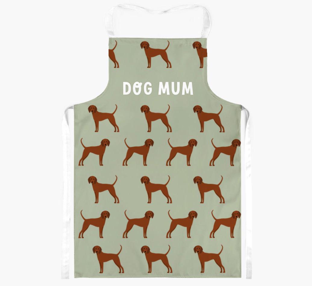 Available in five stylish colours, this apron is made extra special as it's personalised with a pattern of Coonhound icons. Pawfect!