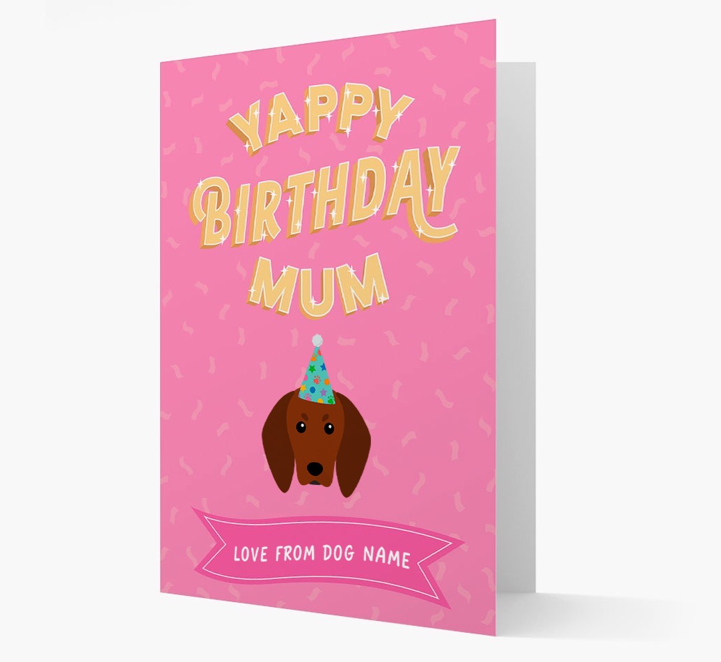 Yappy Birthday Mum: Personalised Redbone Coonhound Card