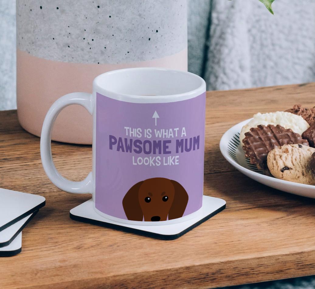 Featuring a cheeky Coonhound icon and printed with the words ‘This is what a pawsome mum looks like’, this mug is sure to be a firm favourite!