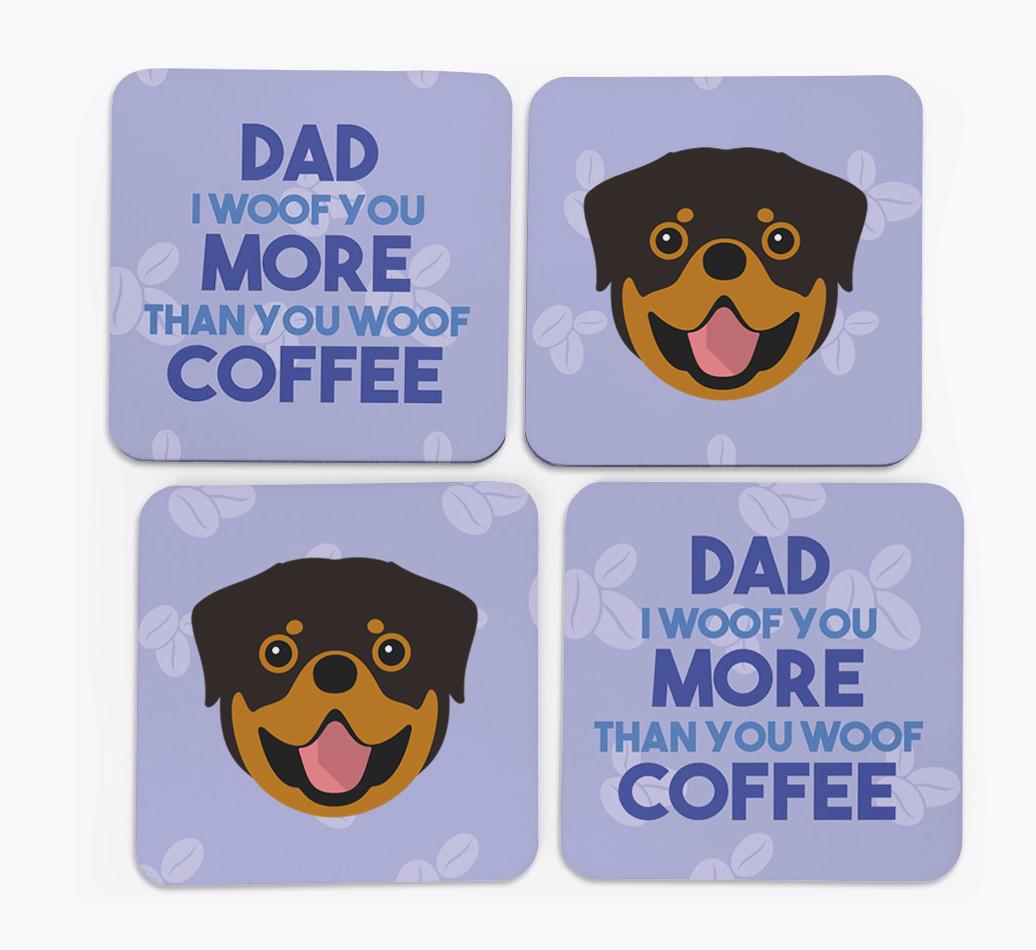 'Dad I Woof You More Than You Woof Coffee' - Personalised Rottweiler Coasters