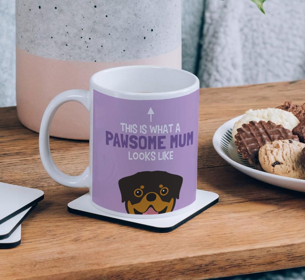 Featuring a cheeky Rottweiler icon and printed with the words ‘This is what a pawsome mum looks like’, this mug is sure to be a firm favourite!