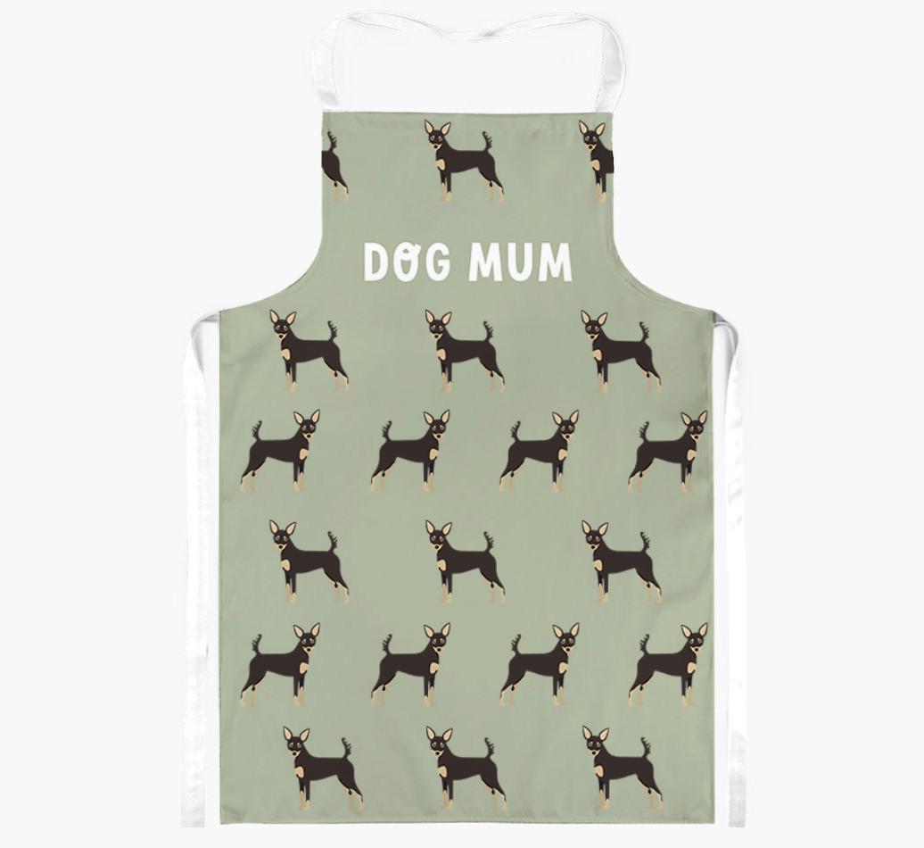 Available in five stylish colours, this apron is made extra special as it's personalised with a pattern of Russian Toy icons. Pawfect!