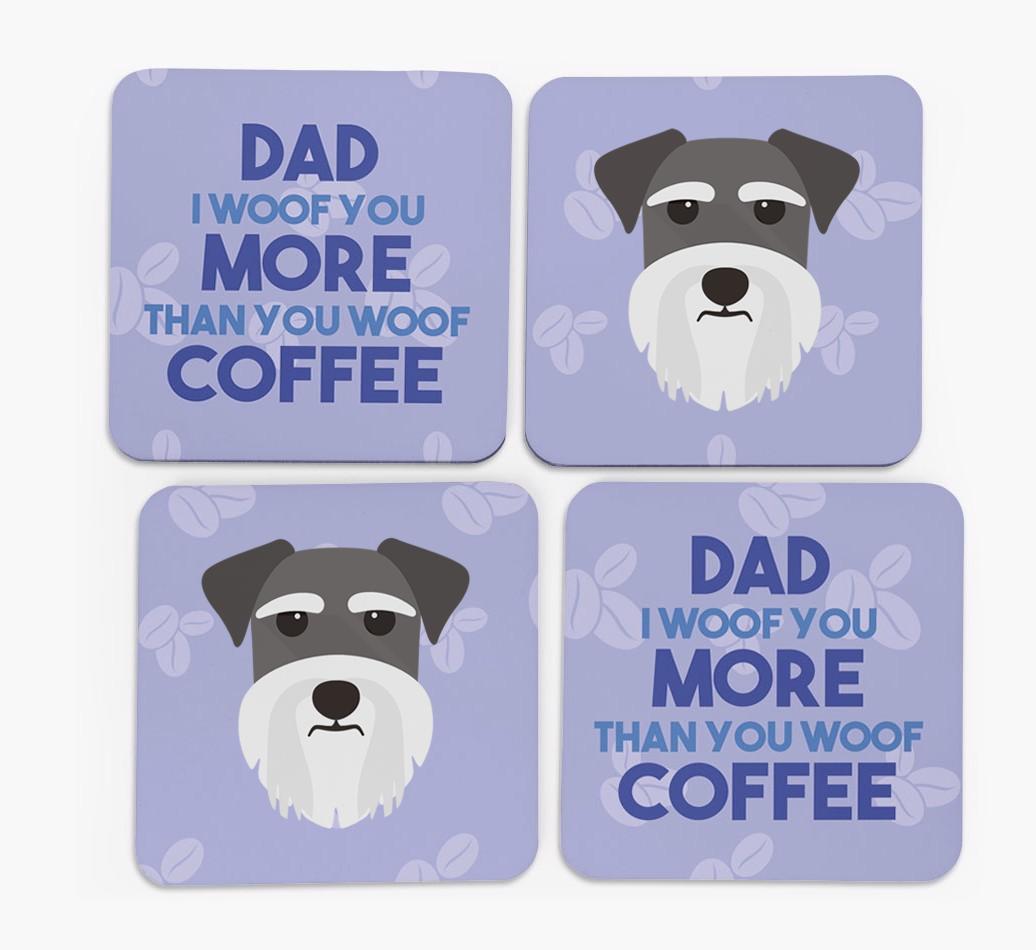 'Dad I Woof You More Than You Woof Coffee' - Personalised Schnauzer Coasters