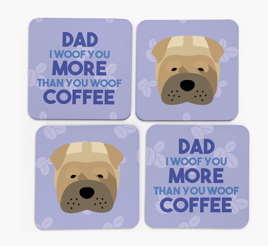 'Dad I Woof You More Than You Woof Coffee' - Personalised Shar Pei Coasters