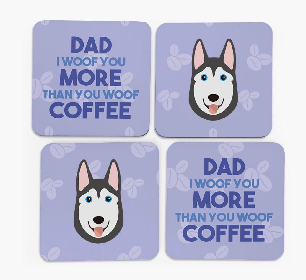 'Dad I Woof You More Than You Woof Coffee' - Personalised Siberian Husky Coasters