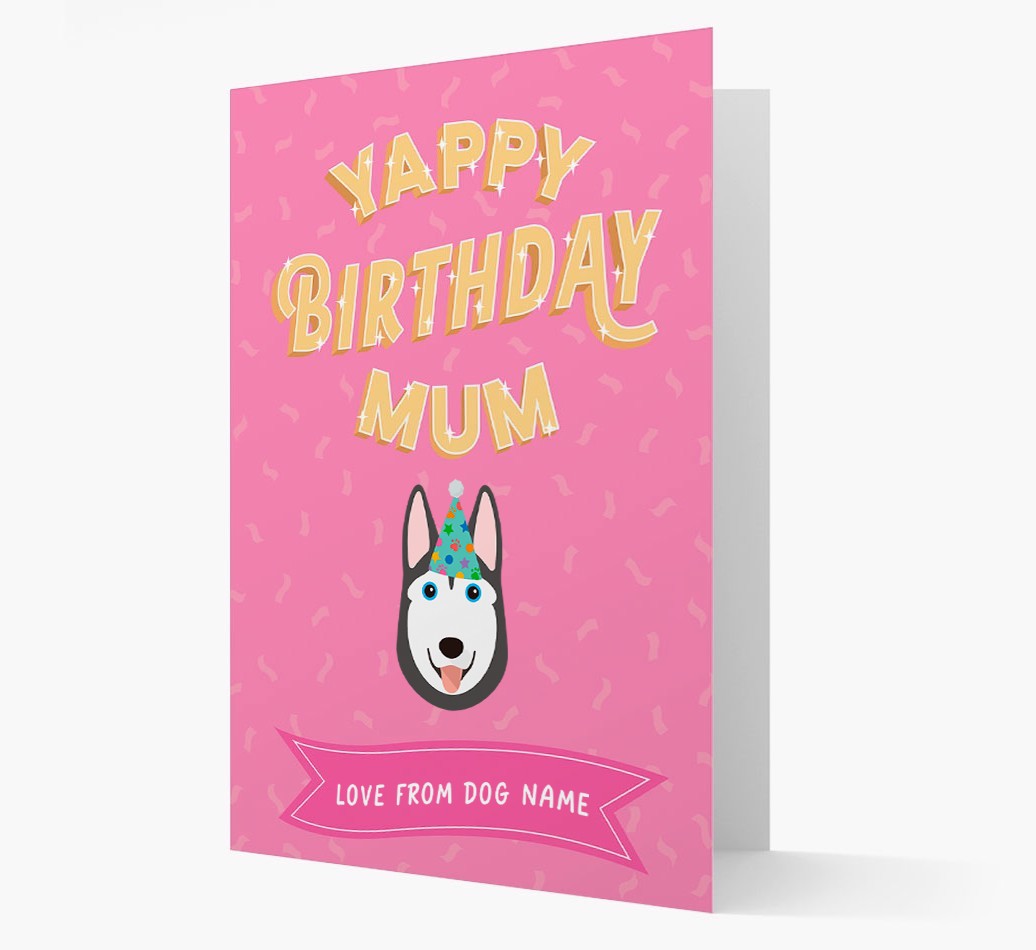 This customisable Husky card is a woofly way for Siberian Husky to wish their mum the yappiest of birthdays!