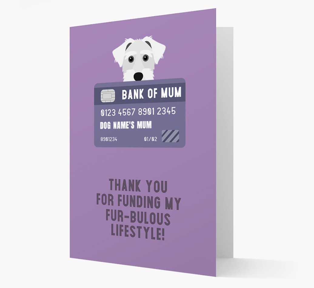 'Bank of Mum' - Personalised Sporting Lucas Terrier Card