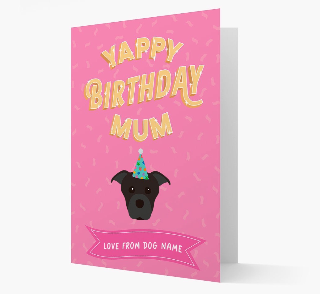 This customisable Staffie card is a woofly way for Staffordshire Bull Terrier to wish their mum the yappiest of birthdays!