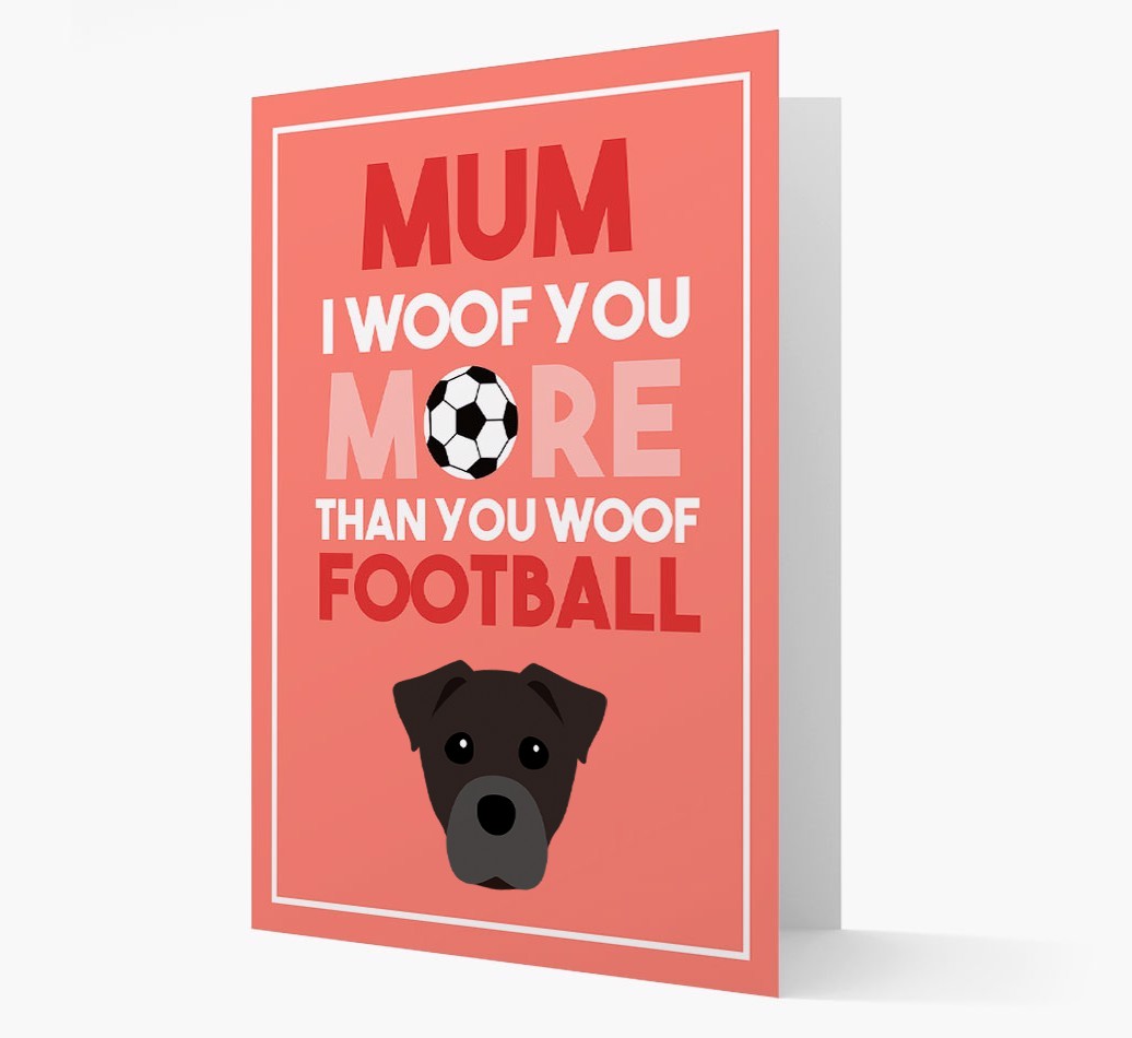 Mum I Woof You More Than You Woof Football: Personalised Staffy Jack Card