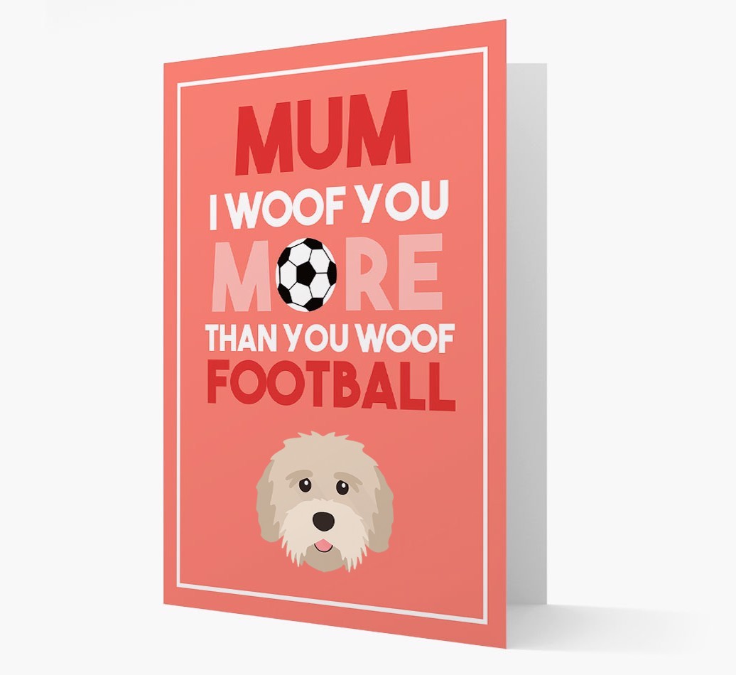 Mum I Woof You More Than You Woof Football: Personalised Tibetan Terrier Card