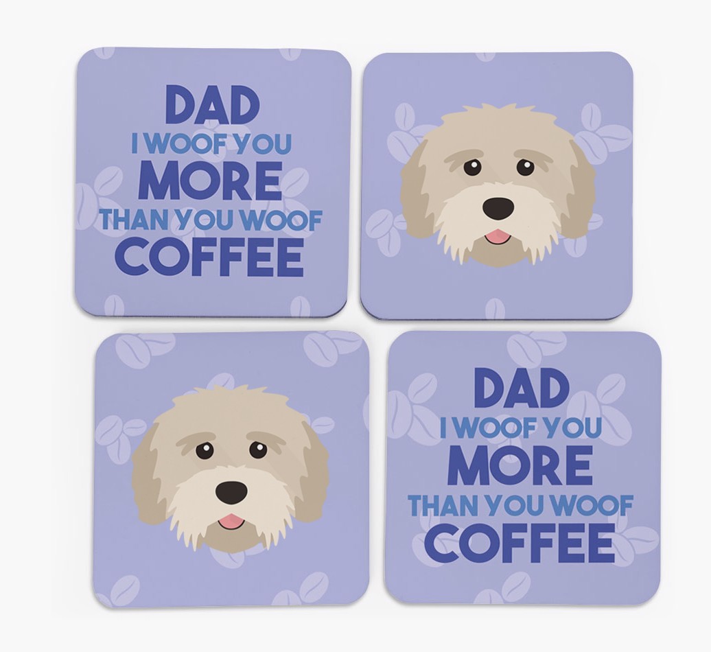 'Dad I Woof You More Than You Woof Coffee' - Personalised Tibetan Terrier Coasters