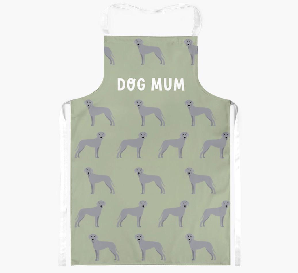 Available in five stylish colours, this apron is made extra special as it's personalised with a pattern of Weimaraner icons. Pawfect!