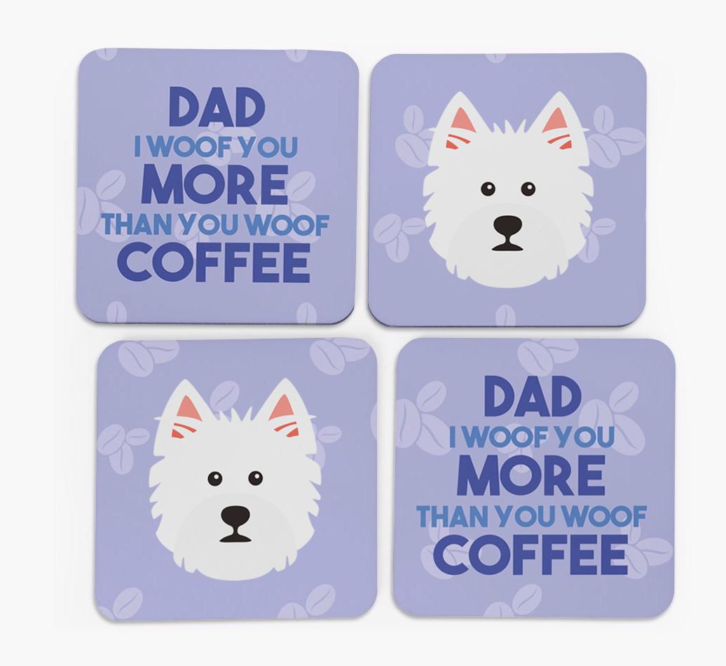'Dad I Woof You More Than You Woof Coffee' - Personalised West Highland White Terrier Coasters