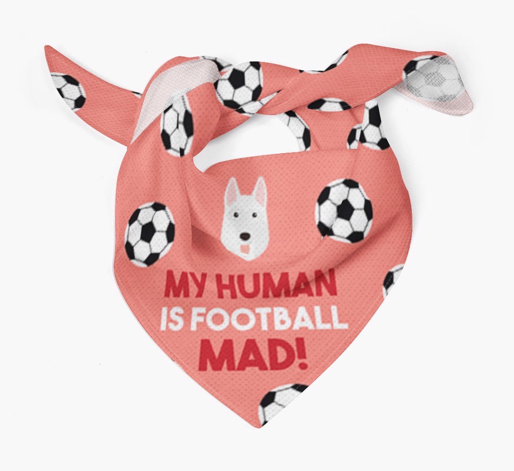 My Human Is Football Mad: Personalised White Swiss Shepherd Dog Bandana