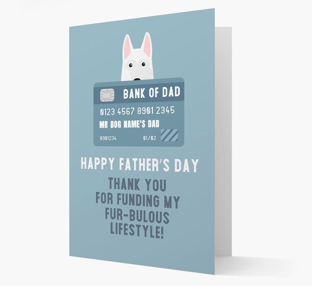 'Bank of Dad' - Personalised White Swiss Shepherd Dog Card
