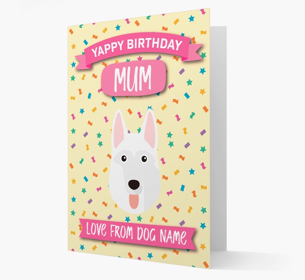 'Yappy Birthday Mum' - Personalised White Swiss Shepherd Dog Birthday Card