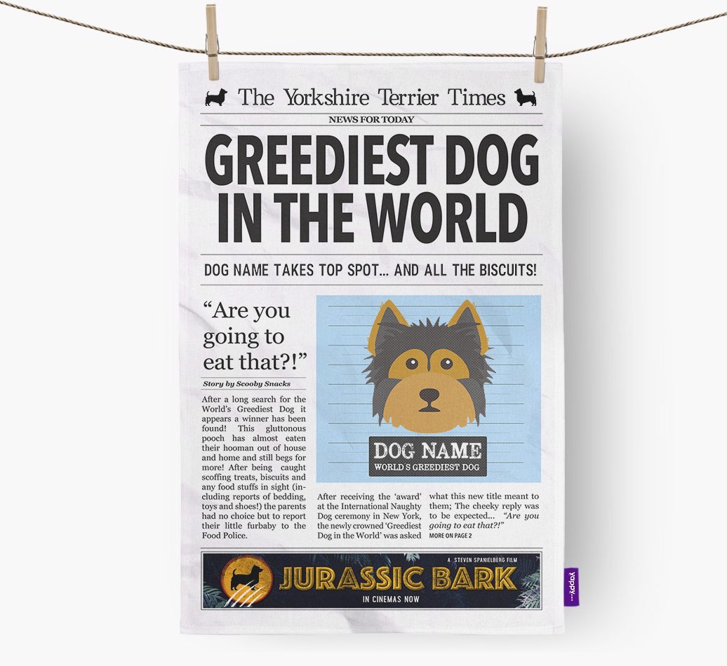 This unique tea towel puts Yorkshire Terrier truly in the spotlight (as if they weren’t already). It features a Yappy exclusive Yorkshire Terrier mug shot icon as well as two smaller Yorkshire Terrier silhouettes.