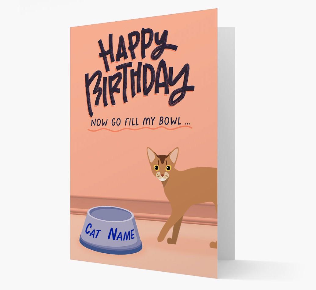 Personalized with your Abyssinian’s icon and name and available in four colors, this card is purrfect for Aby’s who love to wish you happy birthday but equally love their feline food!