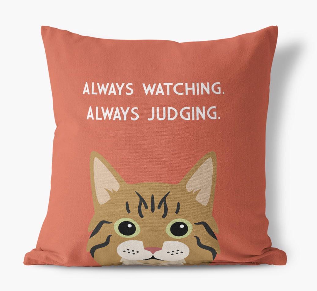Always Watching: Personalized American Bobtail Canvas Pillow
